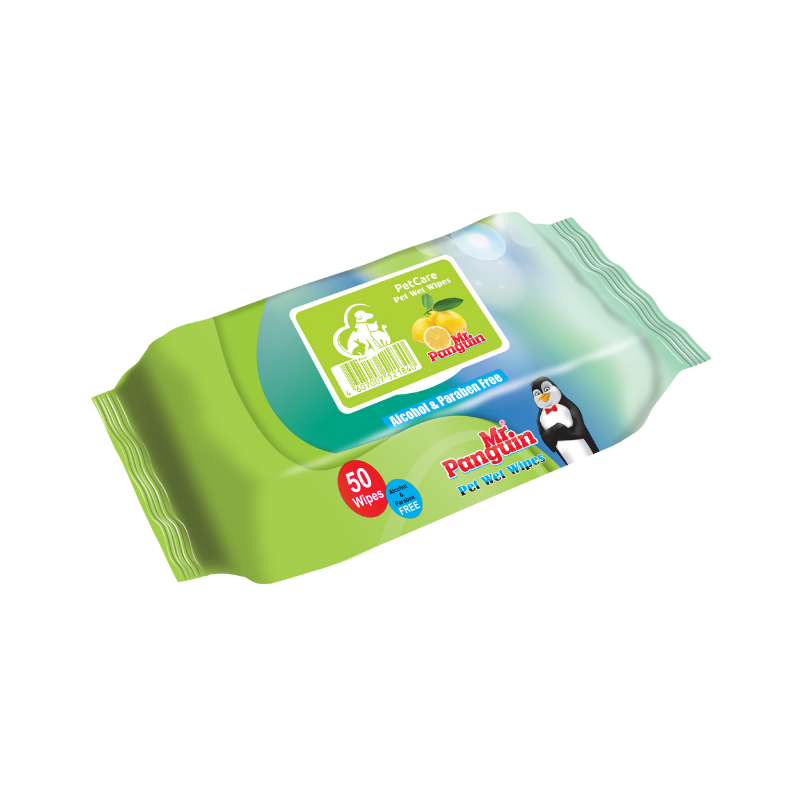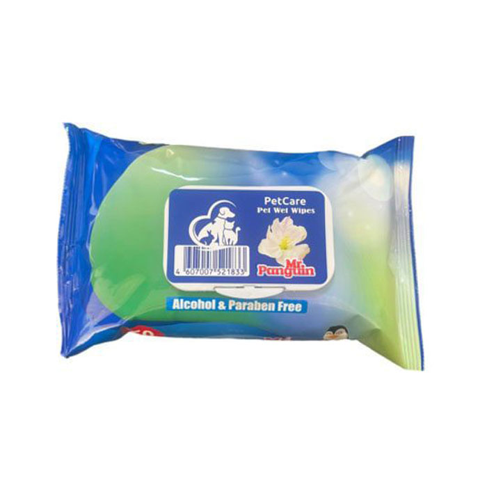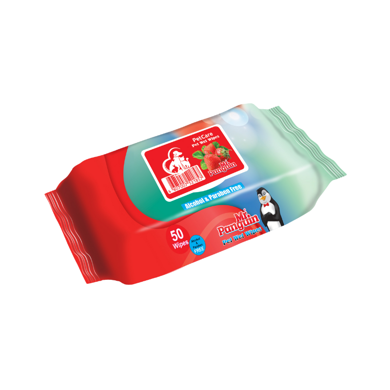دستمال مرطوب مستر پنگوئن مخصوص حیوانات با رایحه توت فرنگی 50 برگی